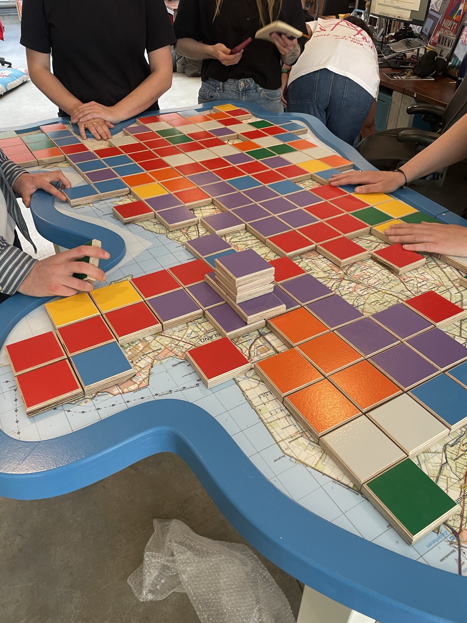 Houten tafel voorzien van ca. 360 verborgen magneten. Inclusief magnetische ‘snap-to-grid’ blokjes.