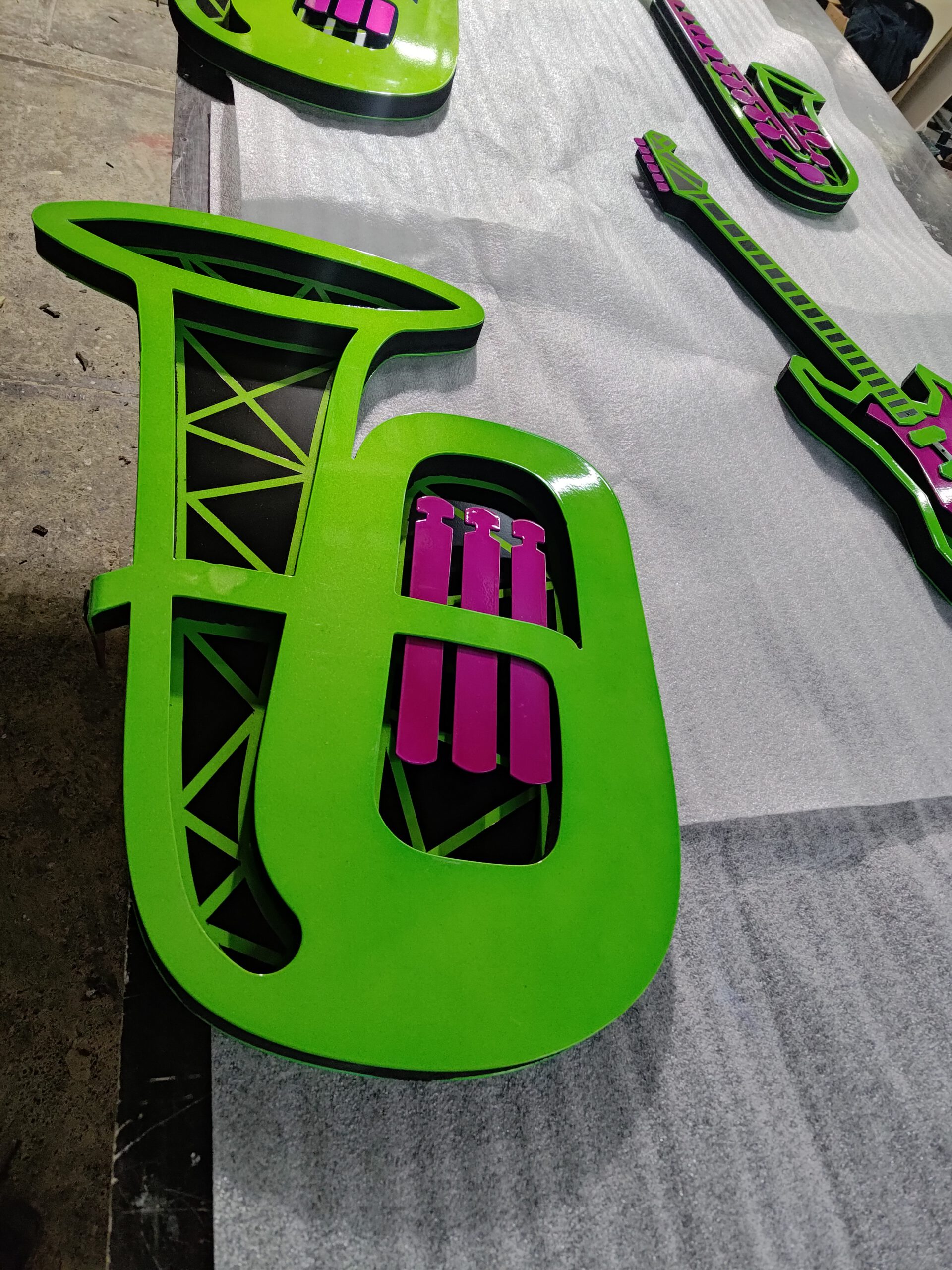 Opdracht: Lichte en duurzame ‘Funky Instrumenten’ 6 stuks. Gepoedercoat aluminium – schuim
